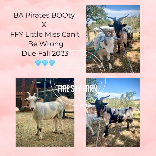 We’ve used Booty in several pairings this season as he his from mini/micro lines and we have a lot of first timers and mini mommas ready to breed. He brings a lot to the table in both conformation AND flash. He’s paired with Misty this time around and I am so excited to see what these two produce. Misty stands at 19.5 inches and is a flashy girl with a blue-tan-tri, moonspotted and Swiss marked coat. She’s also polled and built very correct. She will be mini certified before babies arrive. We are expecting some super flashy babies out of these two with blue eyes, polled and moonspots possible.